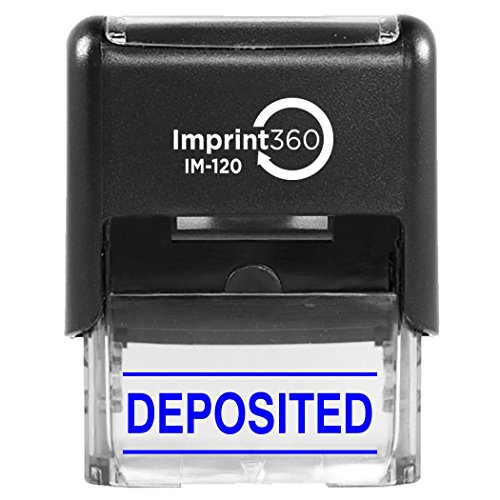 Imprint 360 AS-IMP1128B DEPOSITED with Upper and Lower Bars, Blue Ink, Heavy Duty Commercial Self-Inking Rubber Stamp, 9/16" x 1-1/2" Impression Size