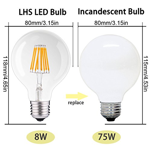 DORESshop LED Filament Bulb Dimmable, 75Watt Equivalent (8W) Light Bulb, G25 LED Vintage Filament Bulb, 2700K Warm White, E26 Base Globe Bulb, 330 Degree Omnidirectional Vanity Light Bulbs, 4PACK
