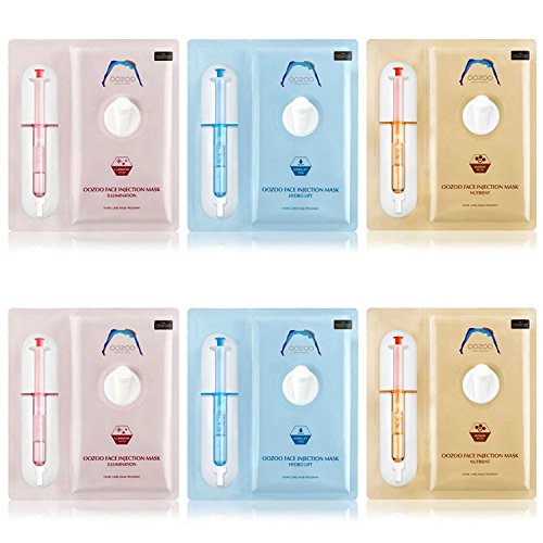 -. Feature : Set of 6 Combination Mask Sampler: See which one works best for you! / Two masks per brand: 6 masks in total / 2 Illumination, 2 Hydro Lift, 2 Nutrient Face Injection Masks / Syringe Volume : 2.8ml Mask Volume : 27ml / Pack a mask to keep the ampoule using a patented technology to preserve the freshness of the active ingredients to separate the syringe aside.