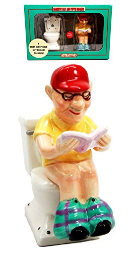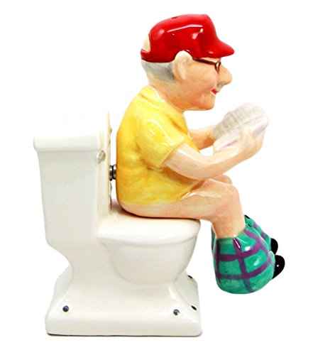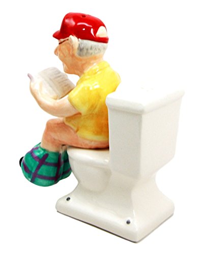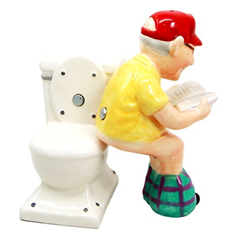 Atlantic Collectibles Morning Toilet Seat Quiet Time Grandpa Reading Newspapers Ceramic Magnetic Salt Pepper Shakers Set Figurines