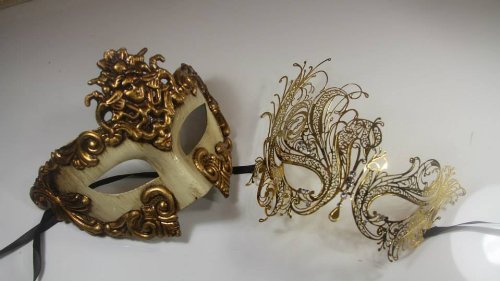 -. Title : Masquerade Couples Venetian Design Masks - 2 Piece Gold Colored Set by VentianMasks