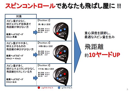 【1.동심원 웨이트 시스템이기 때문에 난다】샤프트축을 기점에 동심원상에 배치한 중심 조절 기구로 중심 거리는 변 네지 않고,중심 심도 만 조정하는 일이 가능하게.중심 거리가 일정이기 때문에「태도감」서는 변하지 않아스핀량을 콘트롤 하여 최적 탄도를 낳는다.