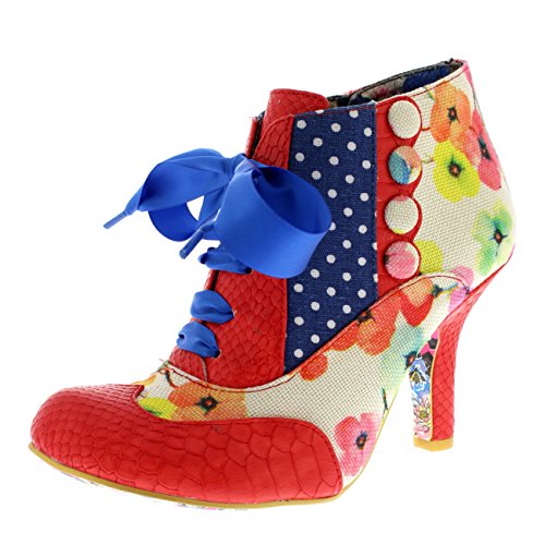 Binding : Apparel Product Description Irregular Choice Blaire Elfglow features a suede, textile and leather upper, breathable textile lining, rubber sole unit, polka dot and floral patterns throughout, side zip fastening, round toe front, contrasting stitching, chunky silk lace up closure and a high slim heel. 0