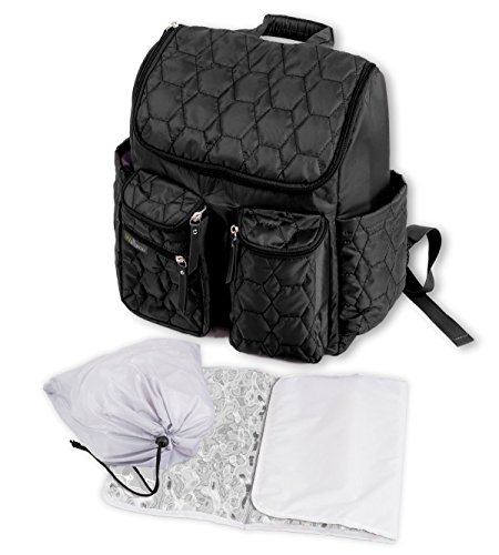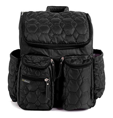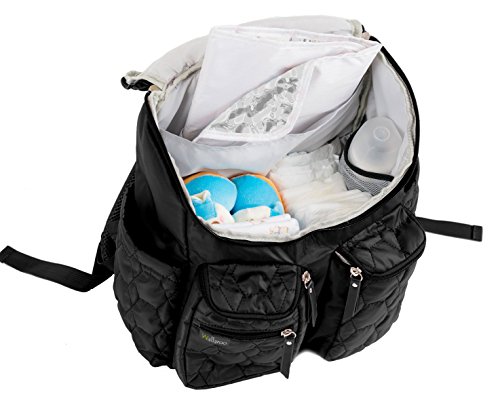 Wallaroo Diaper Bag Backpack with Stroller Straps, Wet Bag and Diaper Changing Pad – For Women and Men - BLACK - LARGE