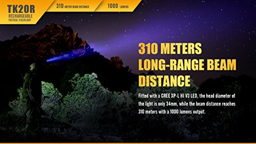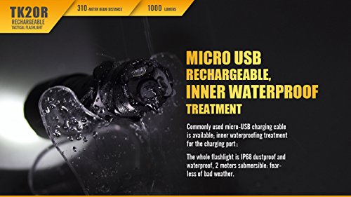 FENIX TK20R 1000 Lumen USB Rechargeable Cree LED tactical Flashlight with, rechargeable battery, holster USB charging cable and EdisonBright BBX3 battery carry case bundle