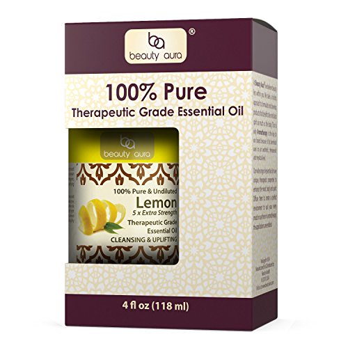 - EXPERIENCE THE FRESH CITRUS SCENT Just a few drops of Beauty Aura lemon essential oil fills the air with a reinvigorating, uplifting fragrance because our oil is 100% pure, undiluted and for maximum benefits. We offer Beauty Aura Lemon essential oil in 5 x extra Strength for more effectiveness.