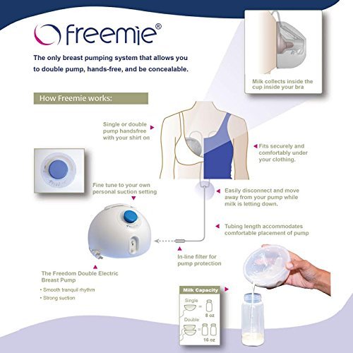 -. Binding : Baby Product -. Brand : Freemie -. Color : White -. Department : baby-boys -. EAN : 0633131620832 -. Feature : Includes a set of Freemie Collection Cups that are compatible with the most popular electric pumps / To use the Freemie cups from this set with another pump, the approP.R.Iate connection kit for that pump is required / Includes sets of 25mm and 28mm funnels - try both sizes for the best fit and function / 32mm funnels are interchangeable with the cups and are available separately -. Label : Dao Health -. Manufacturer : Dao Health -. Model : Freemie Freedom FG031 -. MPN : Freemie Freedom FG031 -. PackageQuantity : 1 -. PartNumber : Freemie Freedom FG031 -. ProductGroup : Baby Product -. ProductTypeName : BABY_PRODUCT -. Publisher : Dao Health -. ReleaseDate : 2015-07-16 -. Studio : Dao Health -. Title : Freemie Freedom Double Electric Hands Free and Concealable Breast Pump, White -. UPC : 730669496295