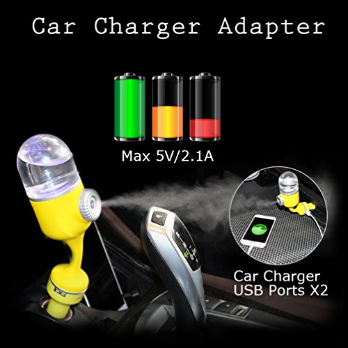 YJY Car Diffuser Aromatherapy Essential Oil Humidifier Dual USB Charger,2018 NEW None-Filter Sponge Never Stop,Auto Shut-off Third 3rd Version Ultrasonic Air Purifier for Automobile(Black)