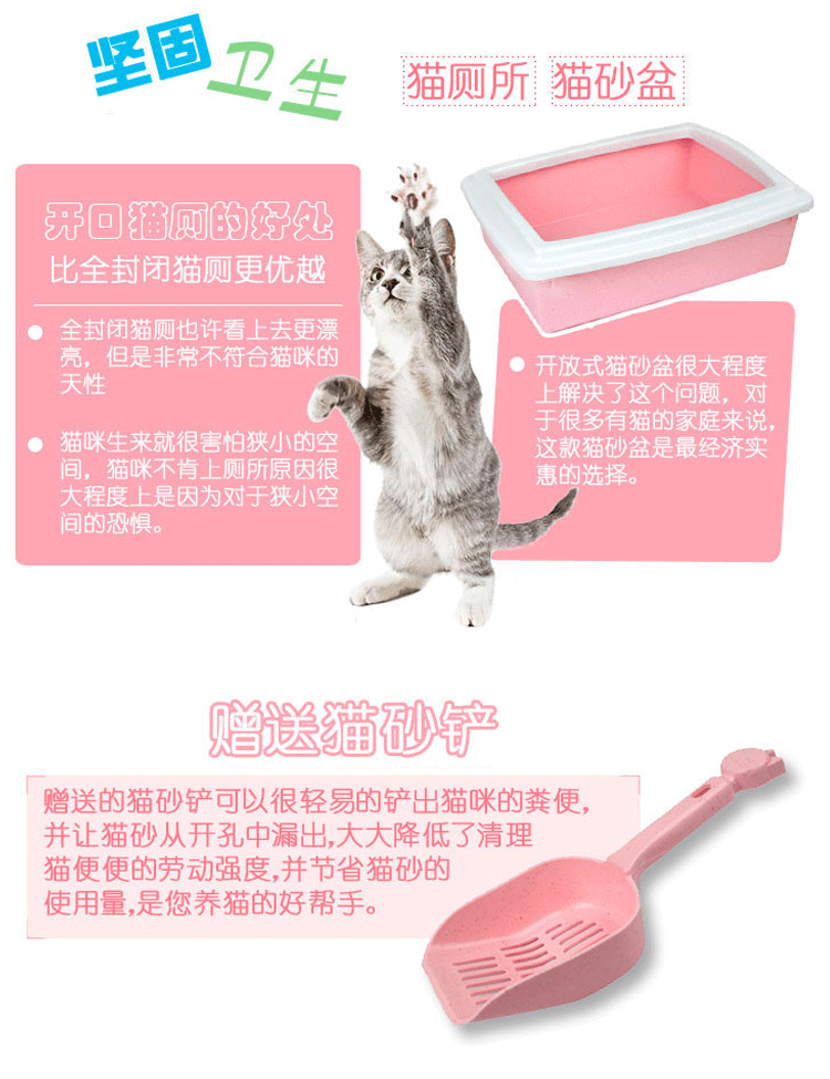 【商品名称】:怡亲开放式猫砂盆 猫猫厕所 配送铲子颜色随机
