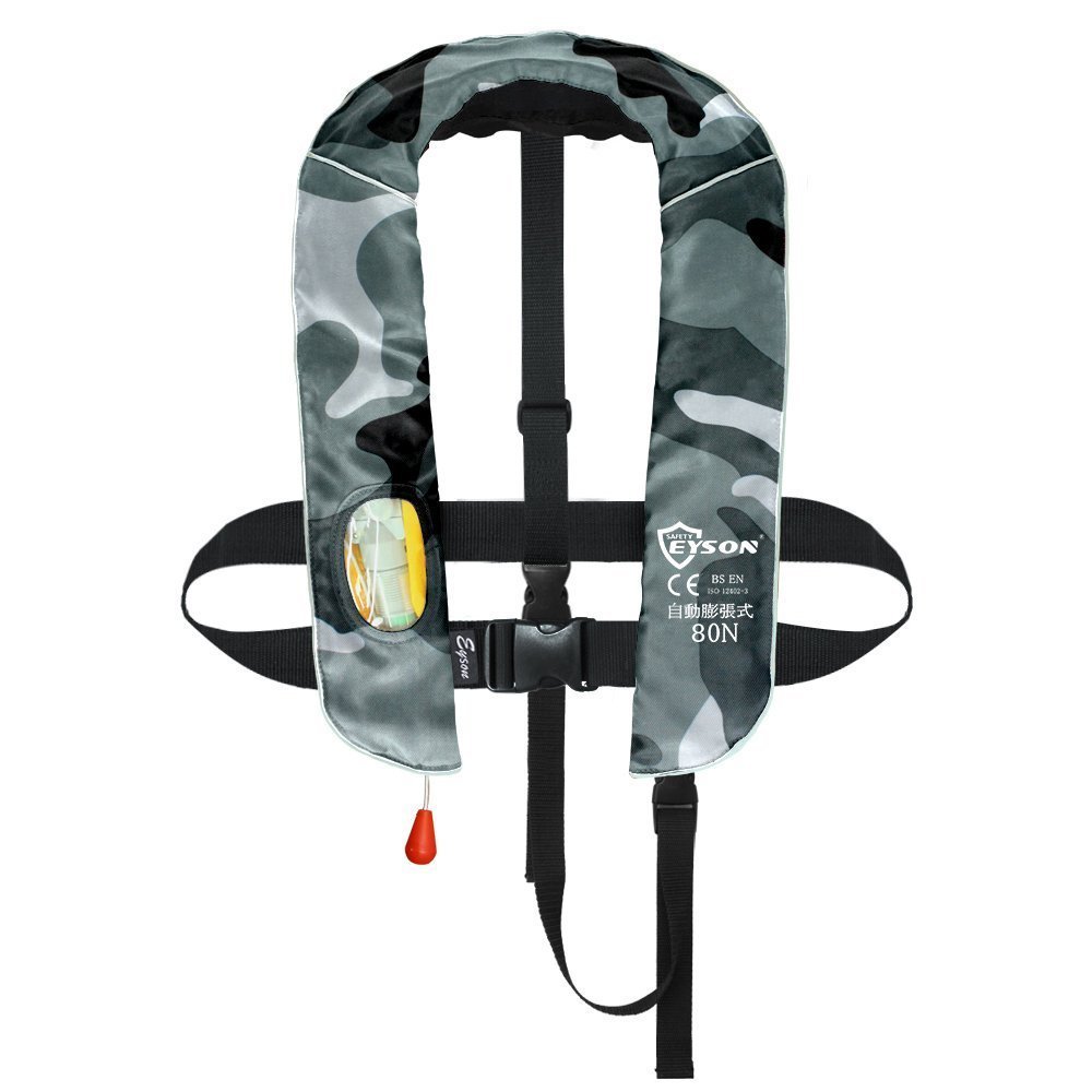This inflatable shoulder type life jacket weighs up to 80 kg