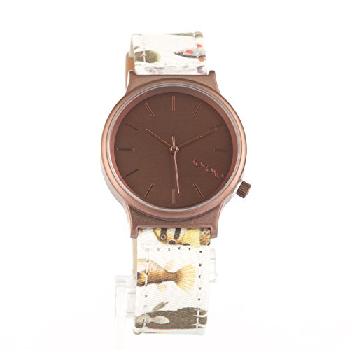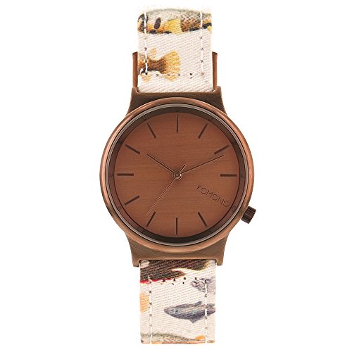 Studio : Komono Publisher : Komono Binding : Watch Product Description Simplify things with the Komono Wizard Print Series Watch, a stylish alternative to all the colossal chronometers dominating wrists. In a range of cases and patterned bands, it features an elegant, uncluttered analog face set in a metal case with a stainless steel back. And without the distractions of extra dials and superfluous functions, its Japanese quartz movement will clearly and directly keep count of your hours. Secured by a leather-lined synthetic strap with leather details, it's a little touch of elementary elegance for our crazily complicated age. 0