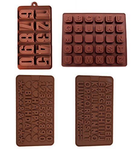 4 Pack nonstick value pack molds of Numbers 123 and Alphabet ABC Silicone baking molds for Candy Chocolate Soap (Ships From USA)