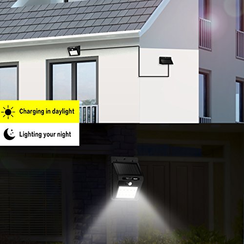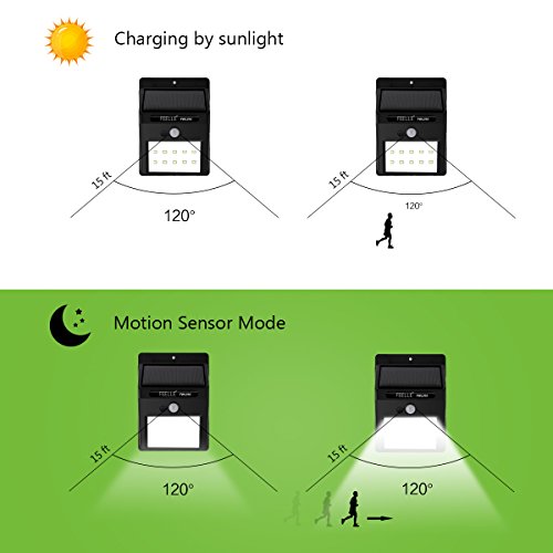 Feelle Separable Solar Motion Sensor Light Outdoor Waterproof Solar Security Wall Light for Garden, Patio, Deck, Yard, Fence, Driveway( 8 ft Connection cord) (4 PACKS)