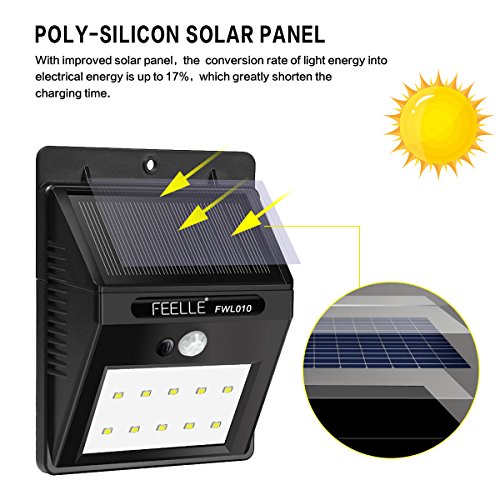 【Solar Panel Powered Lights】This solar wall light equipped with 10 powerful LEDs and high-efficiency poly-silicon solar panel. No addition battery needed, Eco-rriendly and energy saving. absorbing sunlight in the day, store energy of the sun to light your night.