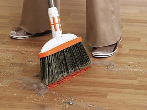 -. Feature : Multi-surface adjustable bristles clean bare floors and low pile rugs / Rubber bristles attract pet hair / Retract rubber bristles for everyday sweeping / Adjustable handle