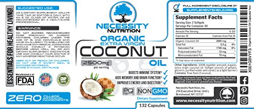 -. Title : Coconut Oil Organic Extra Virgin 132 Softgel/Capsules 2000mg Pure Cold Pressed Non GMO - Great Natural Supplement Source - Supports Weight Loss Management Healthy Hair Skin Nails Growth - Boost Energy