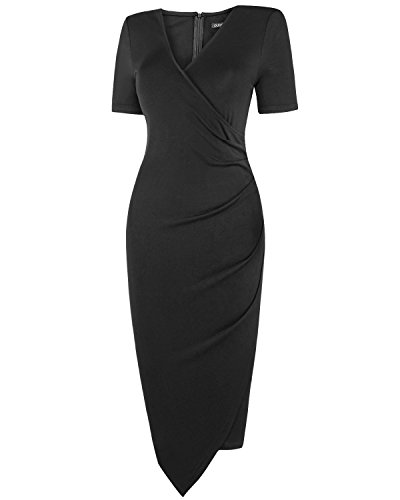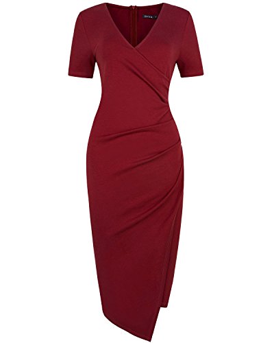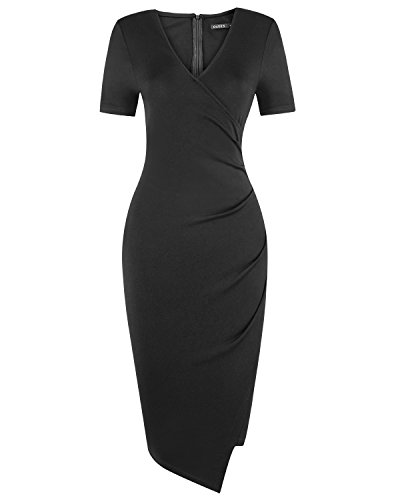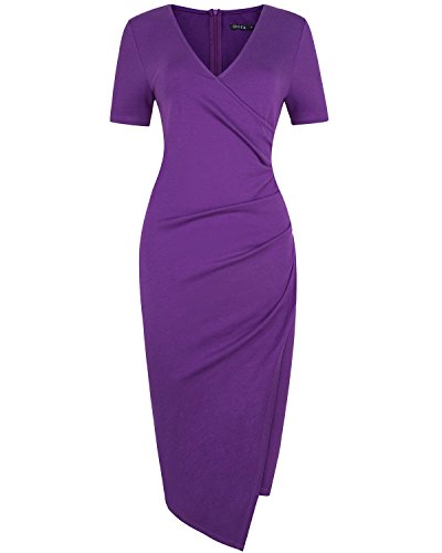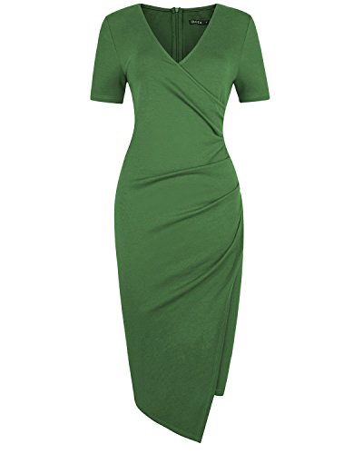 2.Knee Length ,Asymmetrical,Fold,Short Sleeve,V-neck