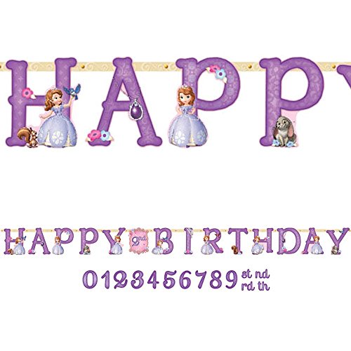 Studio : Amscan Publisher : Amscan Product Description This jumbo sign is definitely fit for a princess! Let guests know that they have arrived at your Sofia the First themed party with this huge banner! This fun purple string of letters features Sofia and some of her favorite furry friends. You can personalize this banner to call out the age that your child is turning. 0