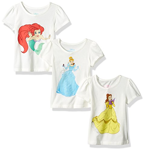 Disney Toddler Girls' Princess Belle, Cinderella, and Ariel 3 Pack T-Shirt, Multi, 6x