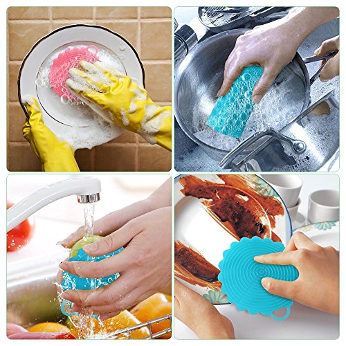 - Free return guarangteed: These silicone sponges are super durable and can be used for a long time, yet still look new. It will come in a pack of 5, and each sponge has a hanging loop for drying or storage. Not satisfied with the product? Feel free to contact us to get free return or reimbursement if you decide to return them.