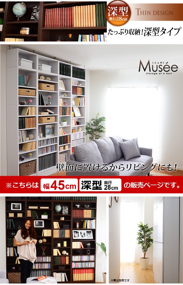 ウォールラック-幅45・深型タイプ-【Musee-ミュゼ-】(天井つっぱり本棚・壁面収納)