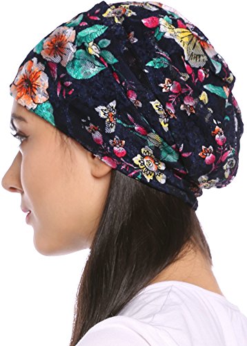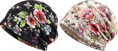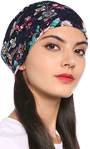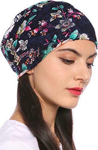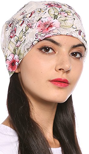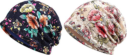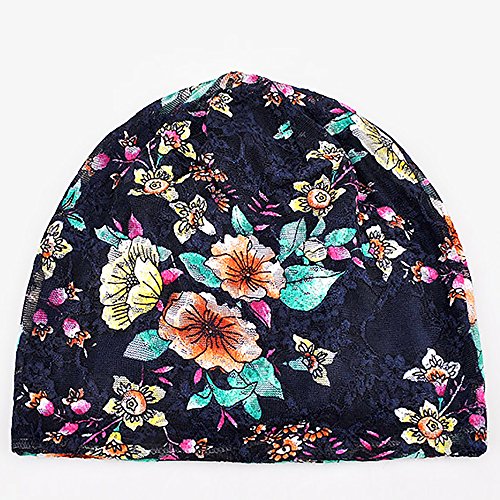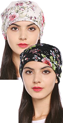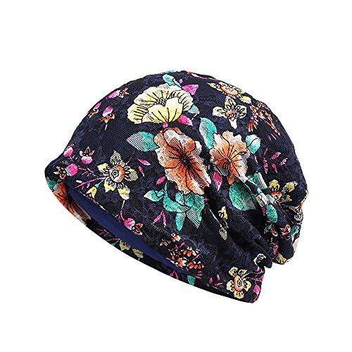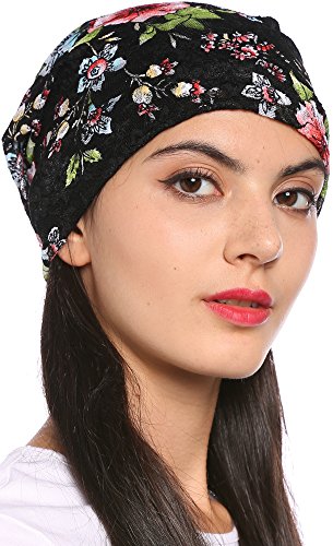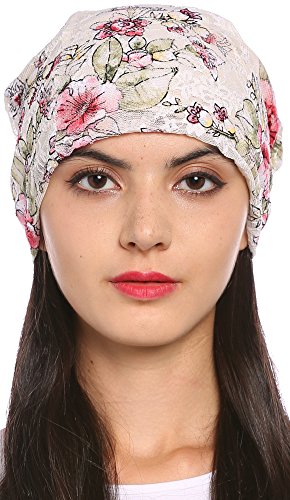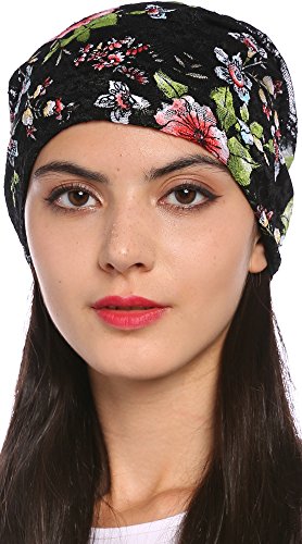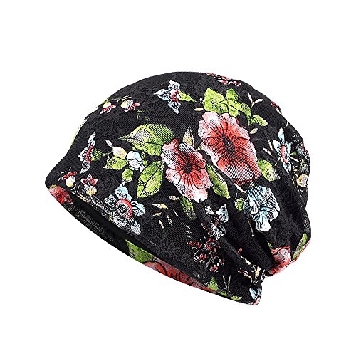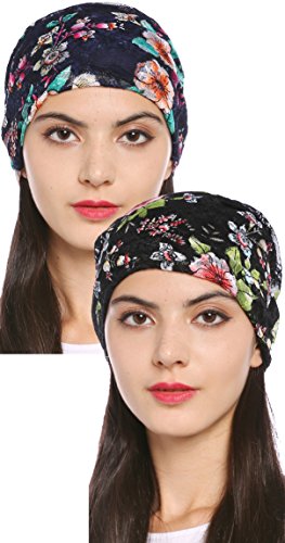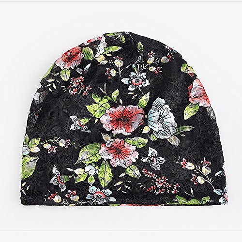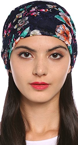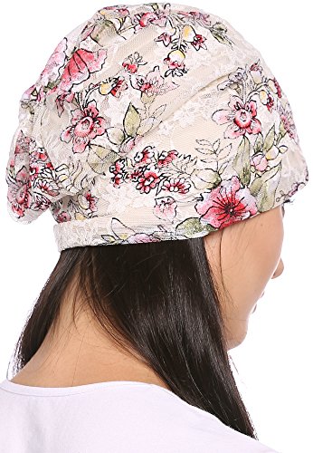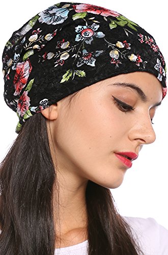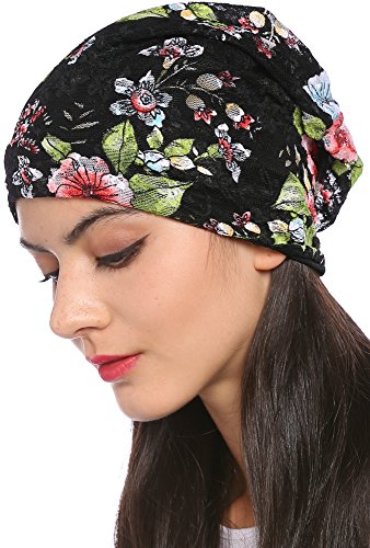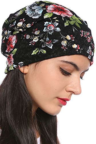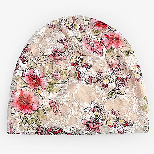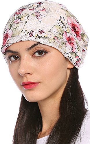 | Ababalaya Women's Elegant Floral Lace Turban Cap Chemo Cancer Beanie Cap Nightcap |