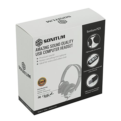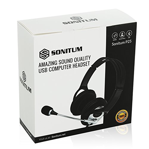 -. Feature : ★ VERSATILE AND MULTI-PURPOSE STEREO HEADSET - Sonitum PC Headset is a consumer favorite device for taking calls, listening to music, chatting and is even compatible with Skype. Though it's not a professional gaming headset it also works with most multimedia gaming machines. Compatible with almost all operating systems on PCs and laptops - Windows, Mac, and IOS & Android smartphones and tablets. / ★ ACCOUSTIC NOISE CANCELLATION - Years of research were put into this amazing headphone to make sure it can deliver exceptional sound quality. No matter how noisy, windy, or loud your surrounding is, rest assured you will hear none of them. The Built-in unidirectional microphone with noises cancelling feature lets you listen to great music quality and lets you make phone calls that are clearer for both parties. / ★ SUPERIOR COMFORT & QUALITY - these best seller Headset with mic features a pair of comfortable LEATHER PADS that will ensure a lasting comfort for the wearer. It comes with a durable slider and flexible headband that allows you to perfectly fit the headset without putting so much stress on your head. Pure comfort throughout your listening sessions is guaranteed. / ★ USB CABLE ACCESSIBLE AND EASY TO USE CONTROLS - This PC headset will be an awesome addition to your computer gadgets at home & office. Featuring a 6-ft. USB flexible cable with easy-to-use volume / call answering / mute controls. With the accessible controls of this headset, you can now take calls, control your music with exceptional convenience. / ★ EXCELLENT HEADSET BACKED WITH EXCELLENT SERVICE - Sonitum PC Headset is designed to meet the high standards of the headset market. Manufactures with the customer in mind. In fact, if your purchase comes with any sorts of defects or problems, do let us know. We offer you a 100% money back guarantee as well as a friendly team of customer support. We want to make sure that you get the best value for your money.