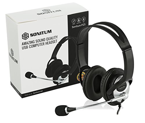 -. Title : Sonitum USB Headset for Computer, Chat, Skype, Webinar, Call Center Headphone - Noise-Cancelling Flexible Microphone - Super Comfortable Ear Pads - USB 6ft Cable - Easy Accessible Button Controls