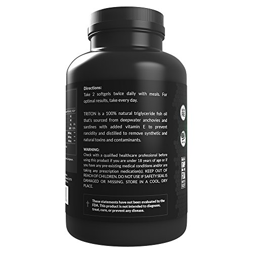 A true triple strength fish oil.Each serving of Triton contains 2,400mg of EPA and DHA, as well as vitamin E and lemon oil to preserve freshness and prevent fish oil burps.