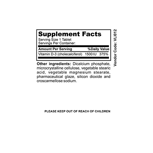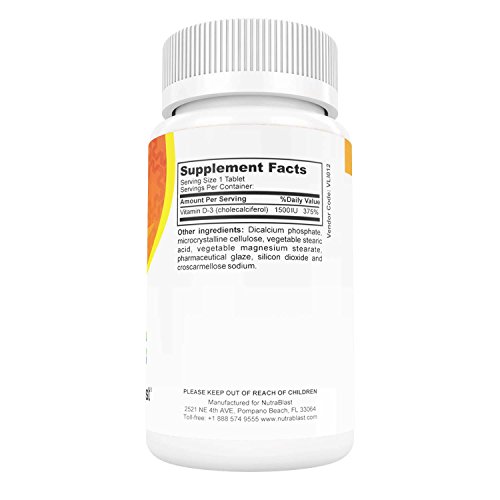 -. Title : NutraBlast Vitamin D3 1500IU Cholecalciferol - Supports Heart, Brain, and Immune Health - Made in USA (100 Tablets)