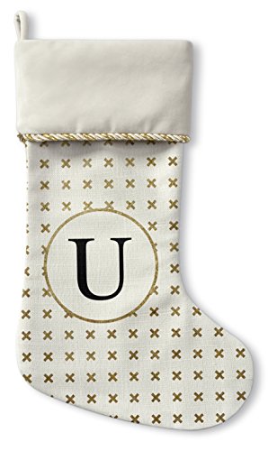 KAVKA Designs Gold U Christmas Stocking, (Gold/White/Black) - , Size: 12.5x21 - (TELAVC1165CSTC)
