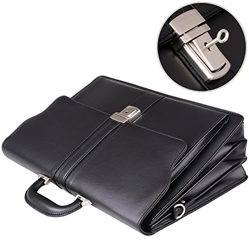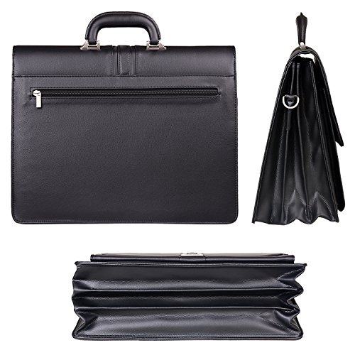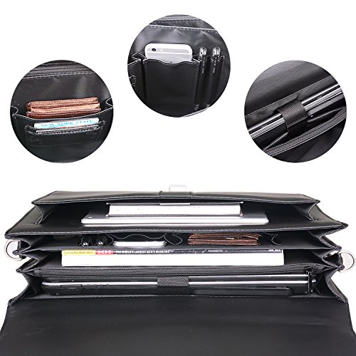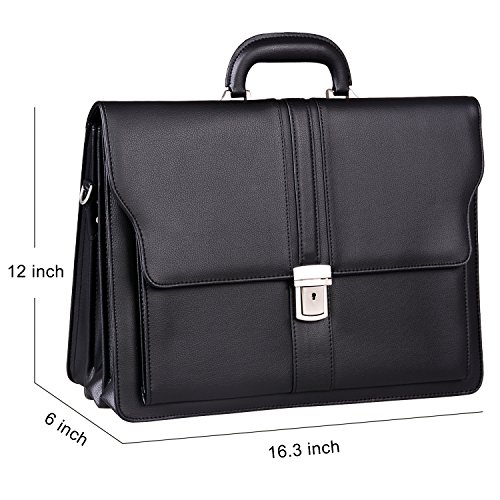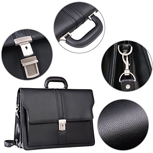 -. Feature : Material: Soft, Smooth,High quality PU leather / Additional detachable and adjustable shoulder strap(strap height appears 28 ~ 60 cm) / Size: 16.3L x 6W x 12H inch(41cm x 15cm x 30cm). Net weight 4.1 lb. Mens briefcase fits up to 14.7 inch laptops / Structure:3 x main compartments, 1 x front slip pocket, 1 x rear zip pocket, 1 x back zip pocket, Multi-function storage area(phone, pens, cards, key, ect.). / Mens briefcase, Anti-dirty, durable, well suited to carry laptop, Ipad, office files, books and other personal stuff