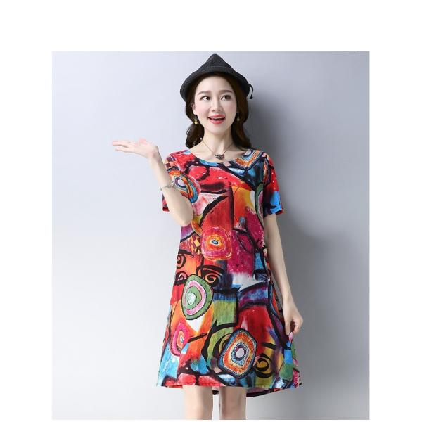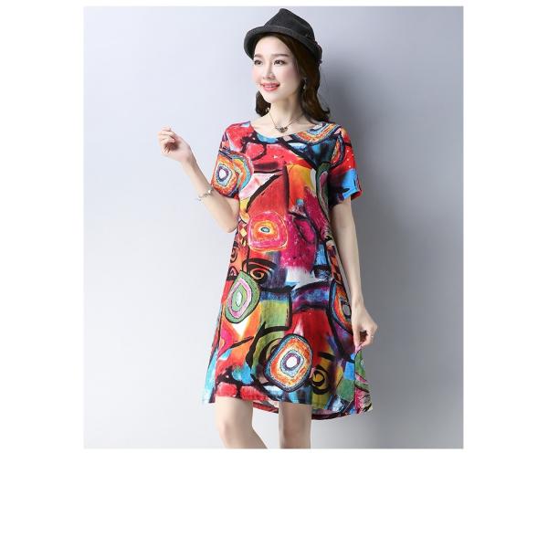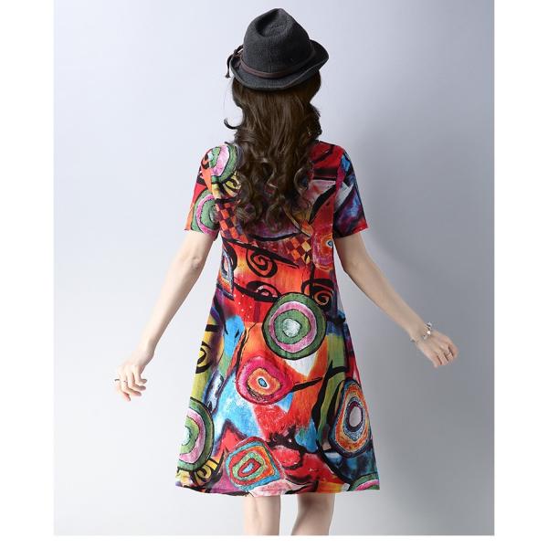 鮮やかなペイズリープリントのひざ丈ワンピース。