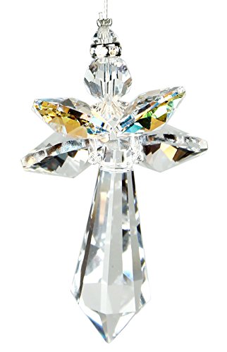 - A large-sized crystal angel sun catcher with clear and colored crystal accents