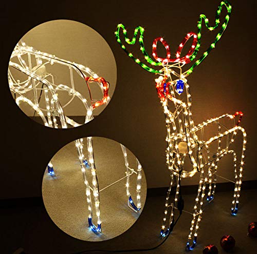 真っ赤なお鼻のトナカイです♪ ご自宅・店舗のライトアップ・クリスマスイルミネーションの準備にいかがでしょう♪ 子どもの背の高さくらいあるビッグサイズ! 首を左右に振る姿がとても愛らしく、主役級のイルミネーションです!! サイズ(約):縦110cm、横95cm