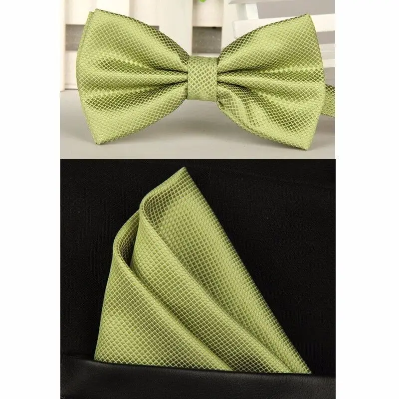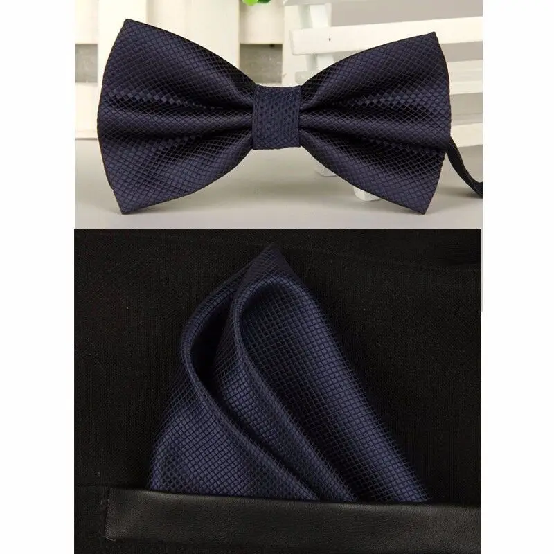 Material: Polyester bowtie: long 12cm * wide 6cm handkerchief: long 22cm * wide 22cm bow tie: bow tie set