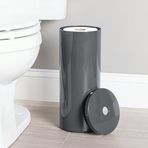 mDesign Free Standing Toilet Paper Holder for Bathroom Storage - Slate Gray