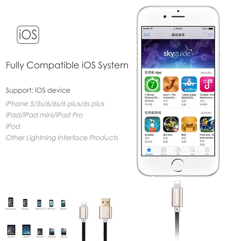 Applicable Models 1:Mobile Phone Cables for Apple iPhone 5 5S SE 6 6S 6S Plus