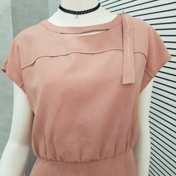 차분하면서도 여성스런 핏감과밋밋함을 없애주기위해 목부분에 포인트장식을 더했읍니다~