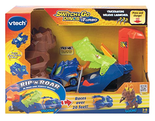 -. Binding : Toy -. Brand : Switch & Go Dinos -. EAN : 3417761501009 -. Feature : Power up and launch small Switch & Go Dinos Turbo vehicles / Includes the Switch & Go Dinos Triceratops racer / Launches vehicles in both dino and vehicle modes / Races more than 20 feet -. IsAdultProduct : 0 -. Label : V Tech -. Manufacturer : V Tech -. Model : 80-150100 -. MPN : 80-150100 -. PackageQuantity : 1 -. PartNumber : 80-150100 -. ProductGroup : Toy -. ProductTypeName : TOYS_AND_GAMES -. Publisher : V Tech -. Studio : V Tech -. Title : VTech Switch & Go Dinos Turbo Triceratops Deluxe Launcher -. UPC : 885522752060 -. Warranty : 30 day warranty against manufacturer defects