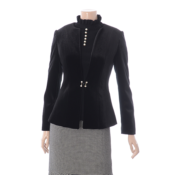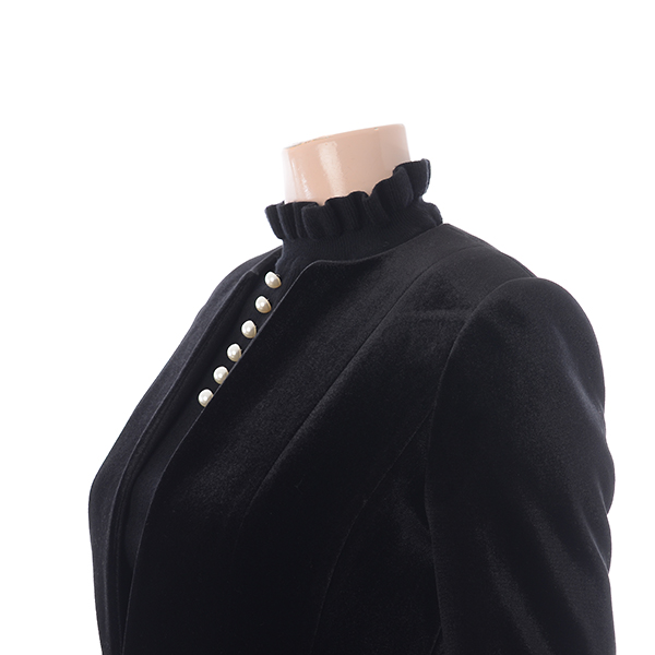 벨벳 소재의 슬림핏 자켓 앞장식을 포인트를 준상품