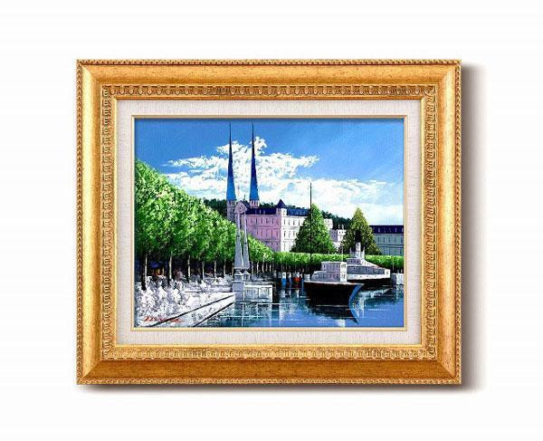 繊細な色使いで静かに流れる風景画をリアルに描いた本物の油絵額です。贅沢感ある金のフレームにセットしました。 製造国:日本 素材・材質/フレーム:樹脂 商品サイズ:約460×552×55mm 重量:2500g 付属品:壁掛けひも ※サプライヤー直送品 ご注文後2~3営業日後の出荷となります【商品名】広瀬 和之油絵額F6金 1139440・ルツェルン