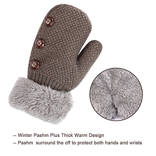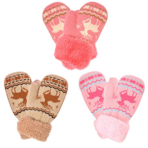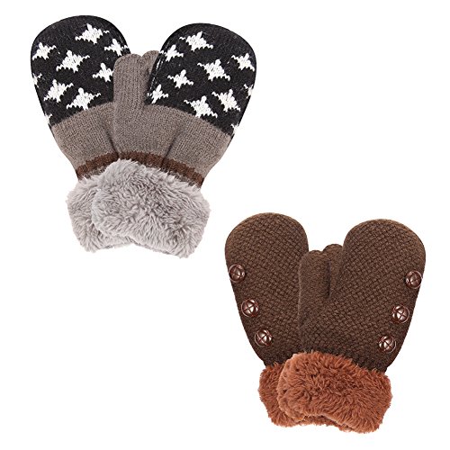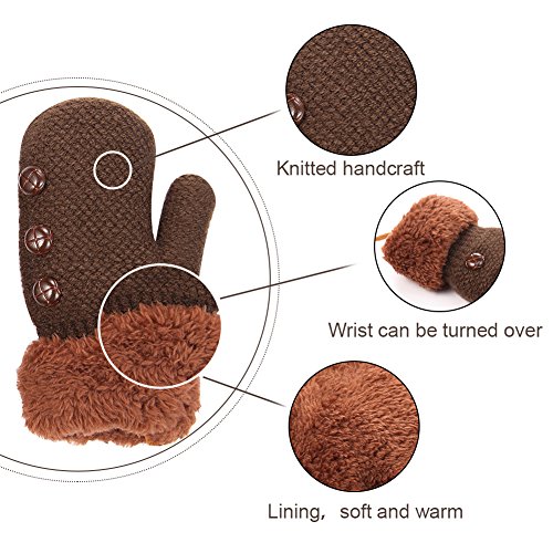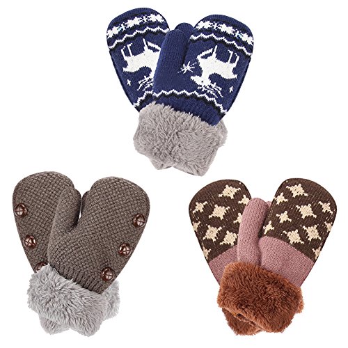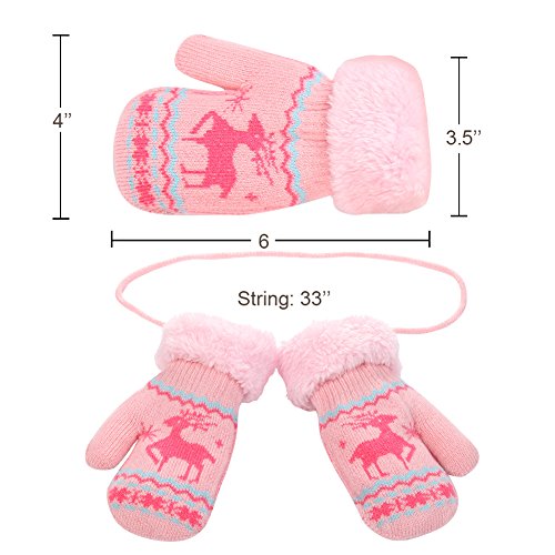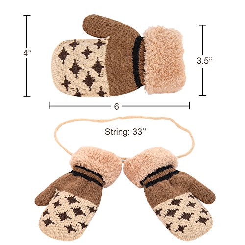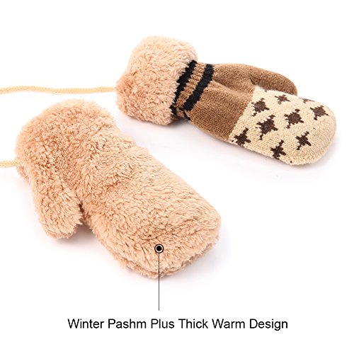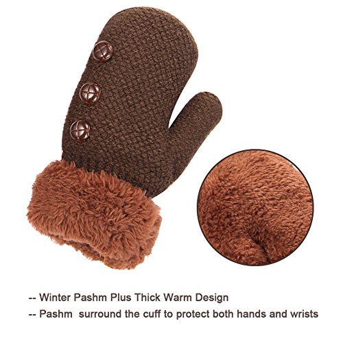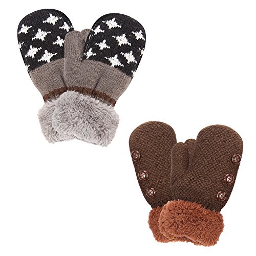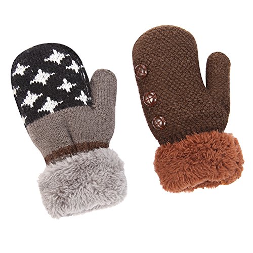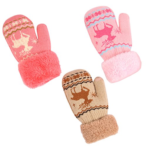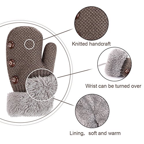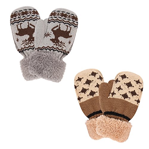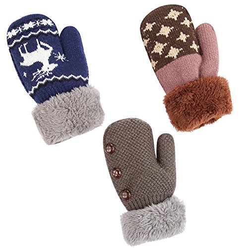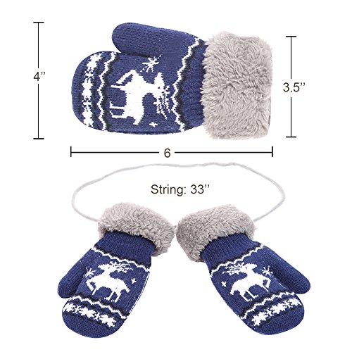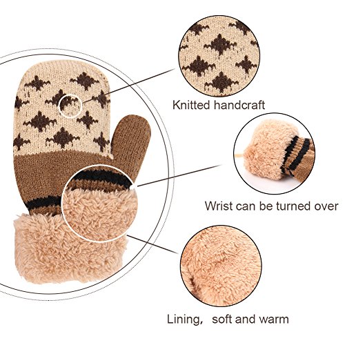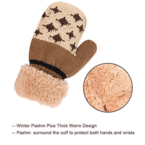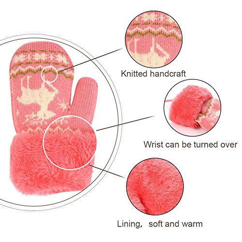 No Risk Purchase. We have money back guarantee within 60 days.Making you a happy customer is our main goal.If you're not happy with our infant gloves,please email us directly,we will Refund or Replace the infant gloves,we will try our best to help you in time. Design for your child. They are knitted on the outside with Sherpa inside to keep hands very warm,mittens feature a full Sherpa lining that extends out to surround the cuff to protect both hands and wrists from the cold. Protect kid from cold. Dressing up gloves to have vacationing in the mountains,outsides or visiting friends,dense wool fibers are really high making it really food quality and keeps cozy and warm. High quality. Kid winter gloves made of 30%wool,15%cony hair,45�rylic fibers,10%spandex.Hand wash;do not bleach;hang dry;low iron;wash separately from different color. Sizes reference. The gloves fit children ages 1-4 years.Total length about 6.0"/15cm;palm width about 3.0"/8cm. Funny cartoon and colorful child will love it. The colorful designs are beautiful.The wrists are just tight enough to help the mittens stay on.These adorable mittens are warm and toasty and super soft.It is thick as well so should be good for snowy weather.