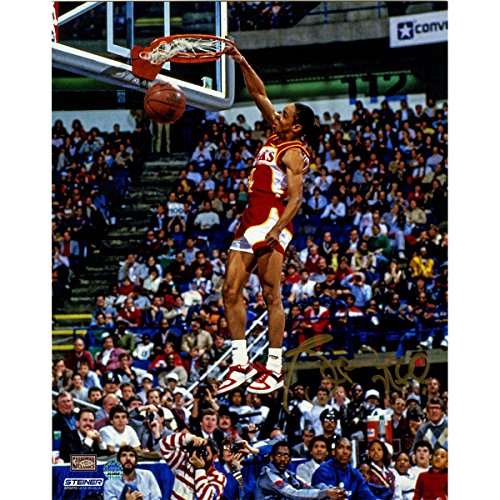 Spud Webb Autographed Slam Dunk Contest 8 Inches by 10 inches Photo Autographed In Gold