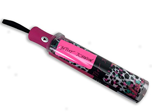 -. Binding : Apparel -. Brand : Bestey Johnson -. Color : Pink -. Department : womens -. EAN : 0024606013424 -. Feature : One push, auto open umbrella makes it easy to get out of the rain / Brightly colored accessory is a perfect addition to your wardrobe style / Rubber Comfort Grip Handle is easy on the hands / 42 inches of coverage keeps you nice and dry / Artsy Pink -. ProductGroup : Apparel -. ProductTypeName : ACCESSORY -. Size : Large -. Title : Betsey Johnson Auto Open Patterned Umbrella, Pink -. UPC : 024606013424