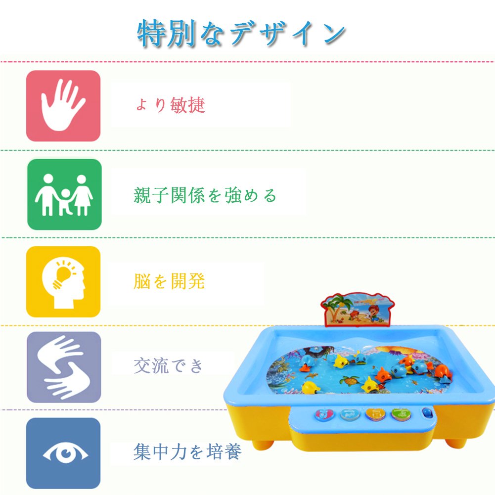 Fun fishing, this classic game teaches cooperation of children's hands and eyes, and players grasp many fish using mini fishing rods or fishing nets.