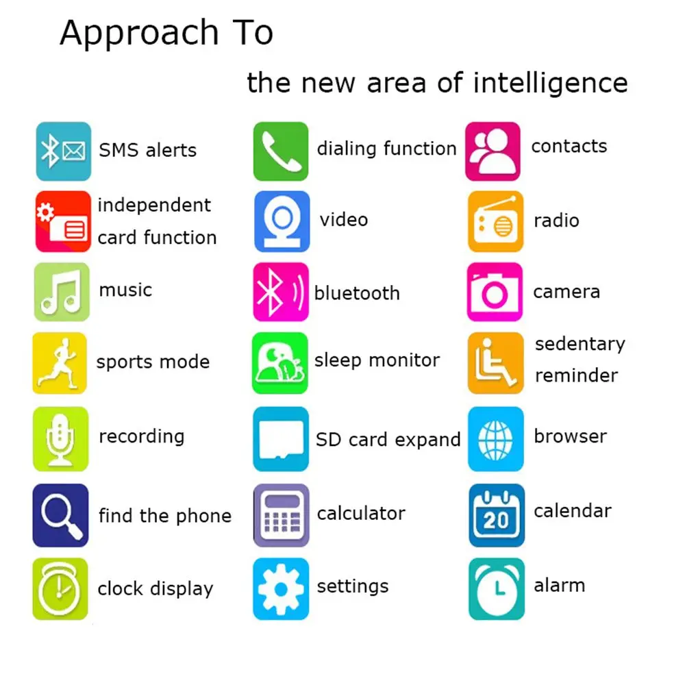 Function:Dial Call,Speed Measurement,Message Reminder,Answer Call,Passometer,Alarm Clock,Interactive Music,Fitness Tracker,Call Reminder,Calendar,Remote Control,Sleep Tracker,Heart Rate Tracker
