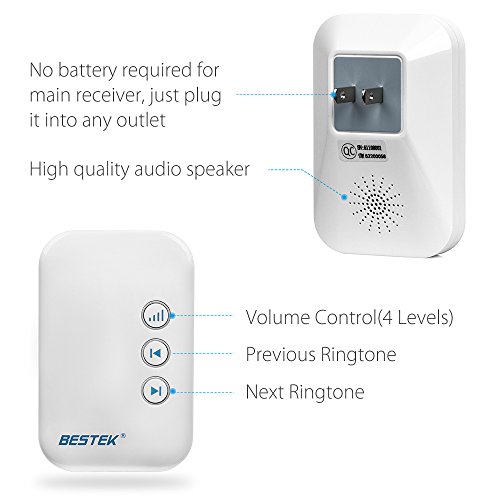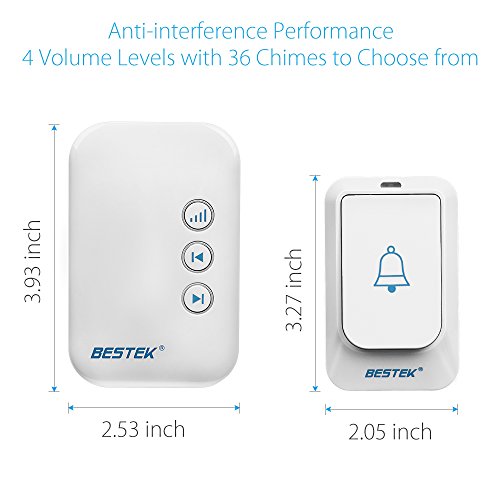 • With different plugin chimes and button options, this BESTEK doorbell kit is perfect for your homes or large apartments. The extra chime makes it easier to hear the doorbell regardless of where you are in your home. Both chimes have 36 tone options and 4 volume levels.Configurable and Expandable
