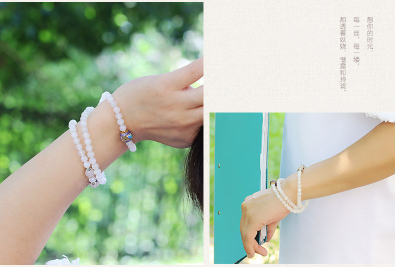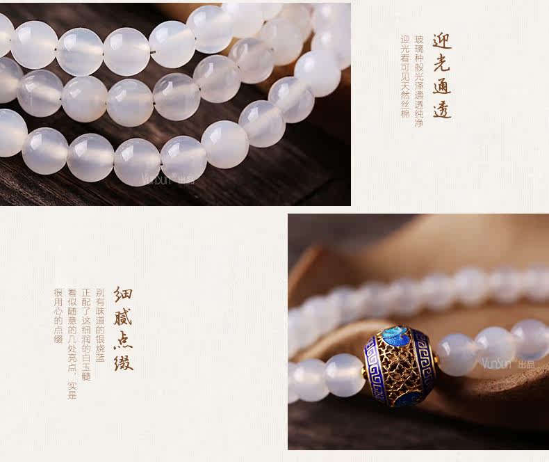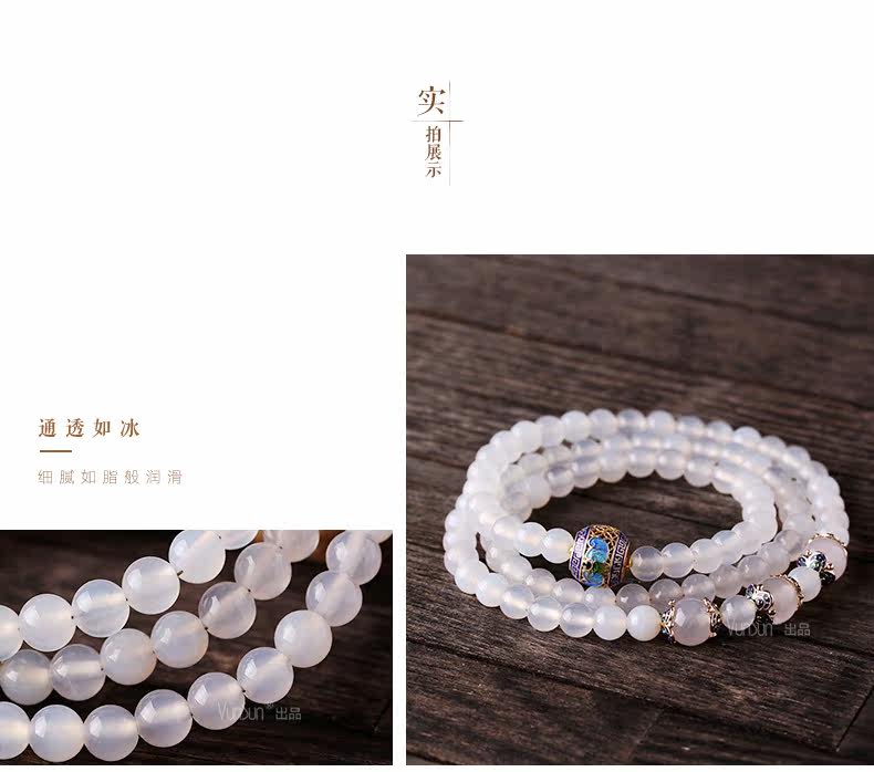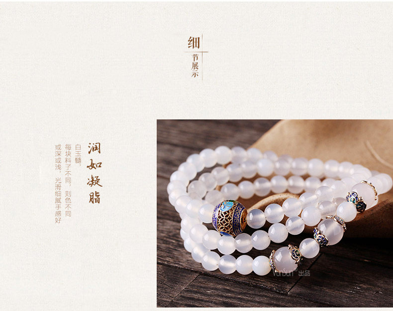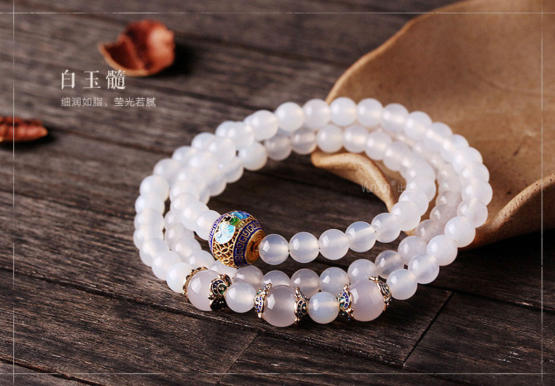 天然白玉髓手链女款多层多圈玛瑙手串女景泰蓝民族简约饰品