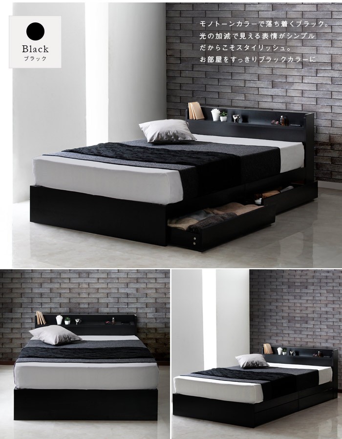 ●人気の多機能ベッドフレーム白黒ルースフレームに、ワンランク上の寝心地マットレスのセットです